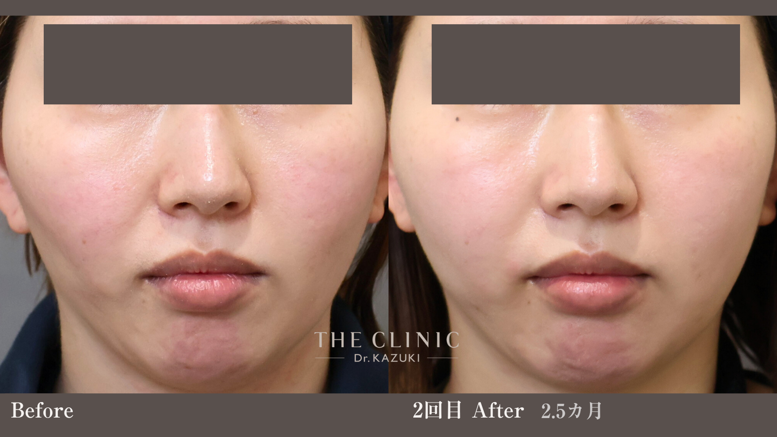 シリンジでの頬脂肪吸引により、不自然な凹みが出来たとのことで…