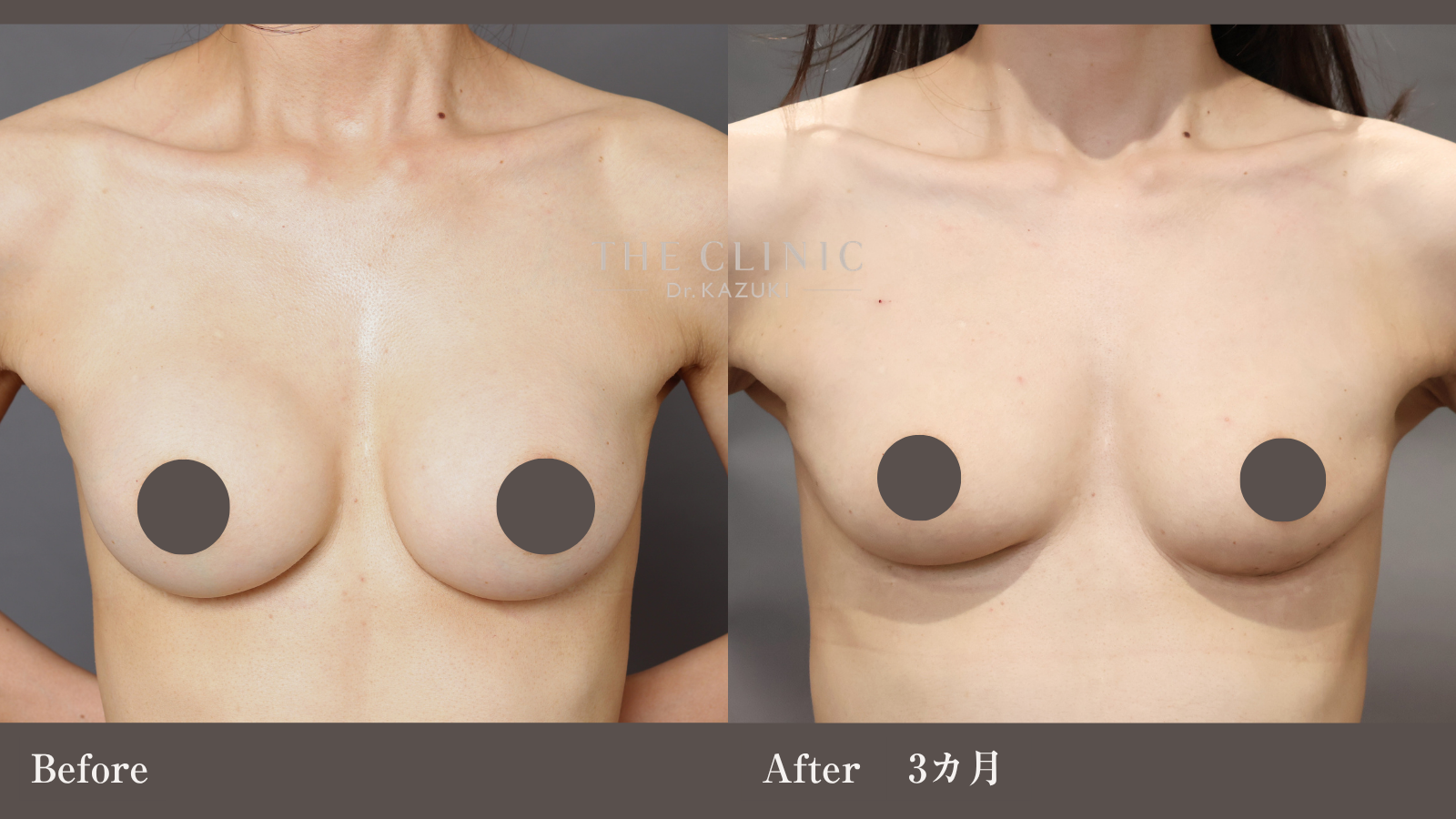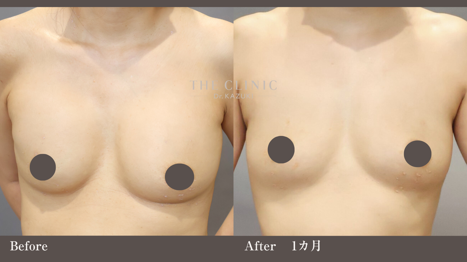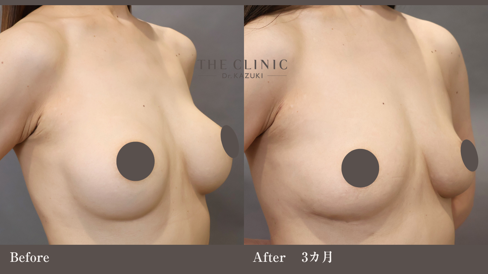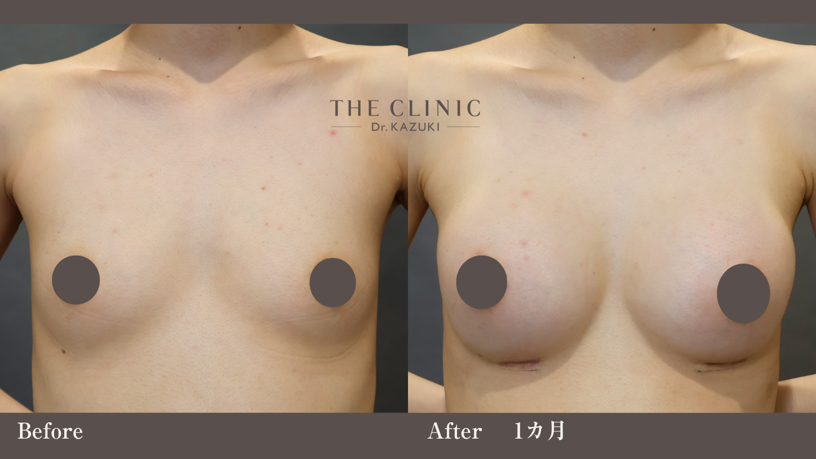 | 施術の説明 | シリコンバッグ豊胸を受けた方のおよそ10人に1人が、術後、拘縮にお悩みになります。バッグが被膜に締め付けられることで、バストが変形し、時にはテニスボールのように硬くなってしまうこの症状は、バッグの除去でしか改善ができません。こちらの30代女性ゲストもバッグを取り出し、同時に脂肪注入豊胸を行うことで改善しました。 |